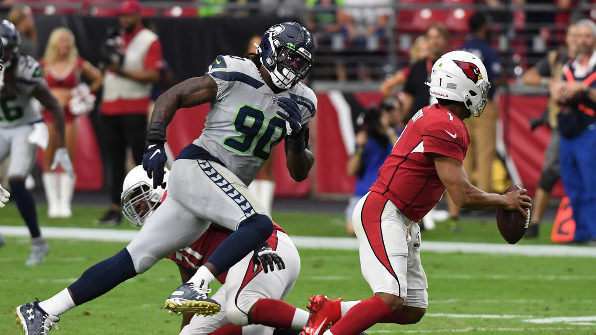 Photo Credit: GLENDALE, ARIZONA - SEPTEMBER 29: Jadeveon Clowney #90 of the Seattle Seahawks chases Kyler Murray #1 of the Arizona Cardinals out of the pocket during the second half of a game at State Farm Stadium on September 29, 2019 in Glendale, Arizona. Seahawks won 27-10. (Photo by Norm Hall/Getty Images)